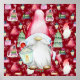 Christmas Santa Gnome & Red Pattern Background Poster