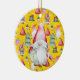 Christmas Santa Gnome & Yellow Pattern Name & Date Ceramic Ornament