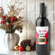 Fun Christmas wine label with with a Santa Suit background. His big white fluffy beard drapes over his jacket, with his black and gold belt.