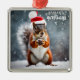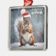 Christmas Santa Squirrel with Pinecone Metal Ornament