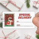 Add festive charm to your holiday packages with this Christmas Santa Stamp Special Delivery Sticker. Featuring a retro Santa design with bold red lettering, it brings a fun and cheerful touch to your gift wrapping. Perfect for labeling presents, envelopes, or mail during the holiday season.