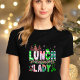 Celebrate the hardworking school lunch ladies this holiday season with a Christmas School Lunch Lady T-Shirt. Featuring festive designs and playful holiday messages, this comfortable tee is perfect for school staff parties, holiday events, or as a thoughtful gift for cafeteria workers. Made from soft fabric with a cheerful Christmas theme, it honors the dedication and spirit of lunch ladies during the festive season.