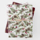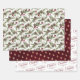 This set of Christmas wrapping paper sheets includes 3 complementary designs: 1 sheet with a rustic woodland pattern of pine cones, pine boughs and other greenery, and burgundy red holly berries, on a white background; 1 sheet with a dark burgundy red watercolor background and gold pine cones; and 1 sheet with elegant script calligraphy “Merry Christmas” and templates for your family name and year date. Check out the collection for many matching products, or contact me through Zazzle Chat if you would like additional matching products or other colorways.