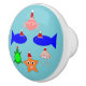 This awesome ceramic knob features a collection of sea creatures wearing santa hats. The marine animals include a pair of blue fish, a cheeky looking little pink crab, a yellow starfish, a sparkly jellyfish and a cute little green turtle.