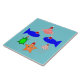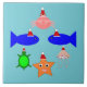 This awesome tile features a collection of sea creatures wearing santa hats. The marine animals include a pair of blue fish, a cheeky looking little pink crab, a yellow starfish, a sparkly jellyfish and a cute little green turtle.
