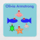 This awesome sheet of kids clothing labels features a collection of sea creatures wearing santa hats. The marine animals include a pair of blue fish, a cheeky looking little pink crab, a yellow starfish, a sparkly jellyfish and a cute little green turtle.