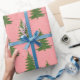 Seamless pattern with a retro Christmas tree. Festive winter pattern with pink background for wrapping paper or textiles.