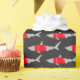 Funny Christmas wrapping paper featuring a pattern of great white sharks wearing red ugly Xmas jumpers. Great fun for shark lovers.