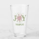 Simple cute winter joy snowflake personalized glass. A wonderful fun personalized with your name. and a modern custom design to add to your trendy holiday and Christmas parties and gift-giving. This design features Christmas holiday joy festive, a whimsical cute simple snowflakes, red and green snowflake, minimalist simple typography, home bar beer mug celebration, holiday family custom customize, holiday party celebration celebrate, holiday party gift favor, personalized Christmas gift, colorful bright cheerful