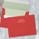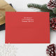 This design features a Christmas holiday simple red, a whimsical fun festive snow pattern, with cute festive merry red colors, a return address label back flap, a matching coordinating envelope,5x7 a7 envelope size, a Christmas holiday mailing supplies, a matching coordinating red and green, a Christmas holiday fun envelope, a Christmas holiday matching envelope