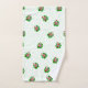 This set of bath towels that includes a wash towel, hand towel, and bath towel are white with vibrant green dots and smiling skeletons holding ornaments up to their eyes wearing a red Santa hat inside bright red and green splatter shapes. Purchase the whole set or individually.