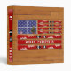 The artwork for Christmas. window, snowflakes, and skis are forming the flag of the United States. The triangles on boards represent the snow mountains and icicles.