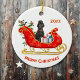Christmas Sleigh Black Poodle Dog Ceramic Ornament