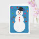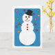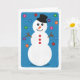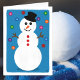 Smiling snowman surrounded by festive colored lights on a blue background. Bring joy to someone this holiday season with this modern style, whimsical card. The illustration is a digital image of hand painted paper. Inside: Blank