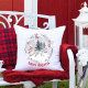 Christmas Outdoor Pillow with Snow Arctic Fox Winter Scenery, red on the back.