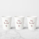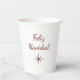 Festive Feliz Navidad Christmas snowflake holiday paper cup, with red customizable script typography lettering and a white background. A fun addition to your winter holiday beverage.