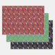 A fun pattern of mittens, mistletoe, and snowflakes in 3 different colors, red, green, and black. Fun and festive wrapping paper for all ages.