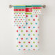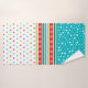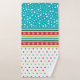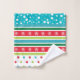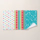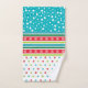 A cute, modern and bright festive Christmas holiday pattern featuring red, green and blue polka dots on white; white snowflakes on the same colored horizontal stripes and a blue background filled with white snow. This patterned design is ideal for your bathroom decor over the winter holidays.