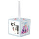 These little photo cubes are a lovely way to share your memories! This cube features a light blue background with a white snowflake pattern and placeholders for four (4) photos. Each photo you upload will be sized to fill the area within the white square frame (so photos with the subjects in the center work best). Give it a try!
