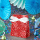 This favor box is shown in a festive Christmas holiday snowflakes print in the color red.