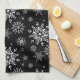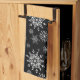 This kitchen towel is shown in Black with a classic Christmas holiday snowflakes print.