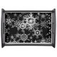 This lovely wooden serving tray is shown in a black and silver Christmas holiday snowflake print design.