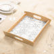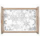 This lovely wooden serving tray is shown in a silver and white Christmas holiday snowflake print design.
