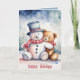Christmas Snowman And Teddy Bear Holiday Card