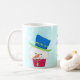 This coffee mug will brighten and warm a winter day or give Christmas cheer. Customize the name. For a gift, fill with candy or hot chocolate mix. The snowman cupcake is wearing a blue top hat with green accents and a lime green neck tie with blue dots. The cupcake paper wrap is red with lavender stripes. An orange carrot makes his nose. The background is a turquoise paint texture on white. This design is original art by Phyllis Dobbs and comes on coordinating products in this store, including a matching gift label. Fully customizable.