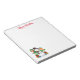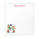Notepad shown in white with a festive Christmas snowman, elves and gifts art print.