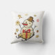 A cute snowman on a sleigh with a present, a little letter and Christmas decorations.