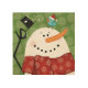 © Veronique Charron / Wild Apple. This image features a Christmas snowman wearing a green scarf. He is snuggling a blue bird who is wearing a Santa Claus hat.