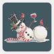 Christmas Snowman With Wine Gift Xmas Drinking Square Sticker