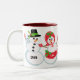 Cute and custom Christmas mug featuring a snowman couple that you can name. Jamie Wogan Edwards