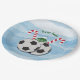 Score a goal with your soccer-playing crew at Christmas with these whimsical paper plates. They feature soccer balls with candy canes and a holiday ornament. You can personalize the green "Your Text" with your family name, team name, or any phrase you like.