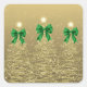 Christmas Sparkling Trees Gold Faux Green Bow Square Sticker