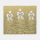Christmas Sparkling Trees Gold Faux Silver Bow Fleece Blanket