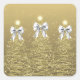 Christmas Sparkling Trees Gold Faux Silver Bow Square Sticker