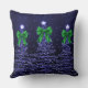 Christmas Sparkling Trees Navy Faux Green Bow Throw Pillow