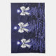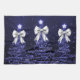 Christmas Sparkling Trees Navy Faux Silver Bow Kitchen Towel