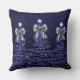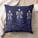 Christmas Sparkling Trees Navy Faux Silver Bow Throw Pillow