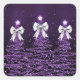 Christmas Sparkling Trees Purple Faux Silver Bow Square Sticker