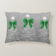 Christmas Sparkling Trees Silver Faux Green Bow Accent Pillow