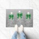 Christmas Sparkling Trees Silver Faux Green Bow Doormat