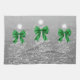 Christmas Sparkling Trees Silver Faux Green Bow Kitchen Towel