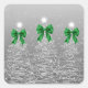 Christmas Sparkling Trees Silver Faux Green Bow Square Sticker