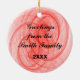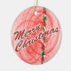 Red fractal swirls, ribbons and stars complete one side of a traditional festive red and green Christmas design on this round ornament. This design has white outlined red "Merry Christmas" text on one side and you can personalize the opposite side. Fill in the template blocks with your words to personalize that side or completely remove the text. Click "Customize it!" to select a font style, color and size you prefer.