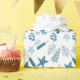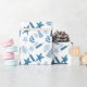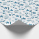 A White Wrapping Paper Patterned In Blue Candles, Trees and Stars For Christmas