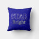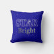 Lumbar pillow in "Star Bright" word art, patterned with the Christmas star on a starry background, in deep midnight blue and silver gray