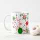 This mug has a mid-century modern design of starbursts and circles in Christmas colors. Fun and festive. Use this mug for your coffee, tea, or hot chocolate on Christmas morning.